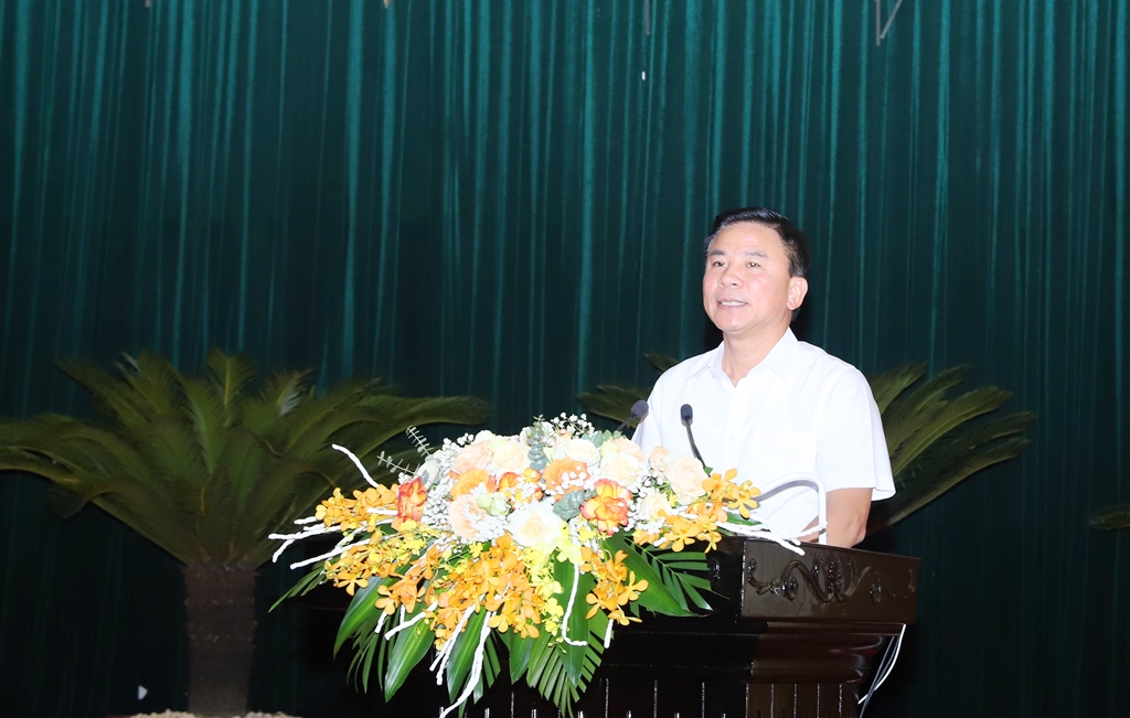 | Đồng chí Đỗ Trọng Hưng - Ủy viên Ban Chấp hành Trung ương Đảng, Bí thư Tỉnh ủy, Chủ tịch HĐND tỉnh, Trưởng Ban Chỉ đạo thực hiện các CTMTQG tỉnh, giai đoạn 2021 - 2025 phát biểu kết luận hội nghị. |