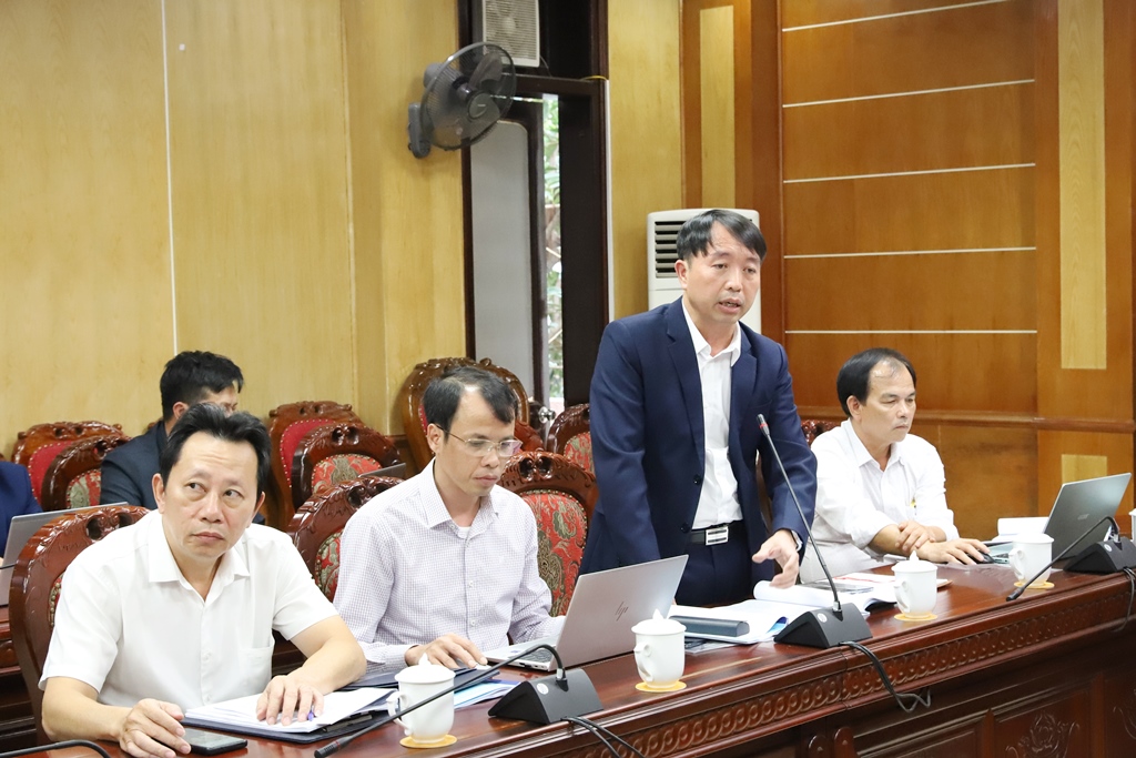 Đại diện lãnh đạo sở, ngành phát biểu tham gia ý kiến tại hội nghị.
