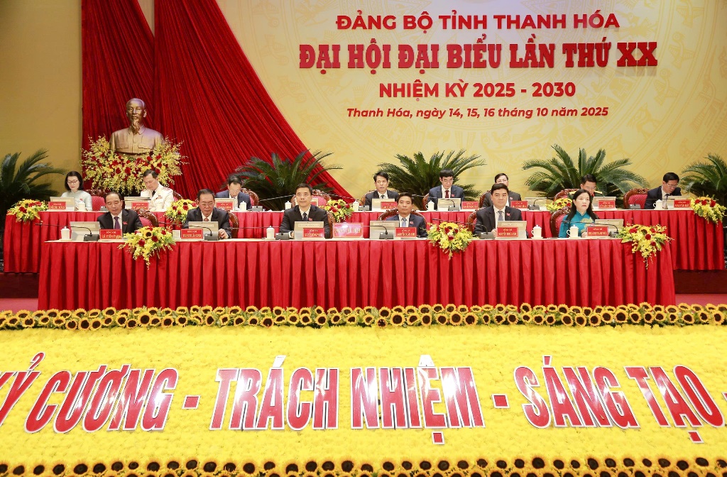 Theo chương trình làm việc, Đại hội đại biểu Đảng bộ tỉnh Thanh Hóa lần thứ XX, nhiệm kỳ 2025-2030 được tổ chức từ ngày 14 đến 16/10.  Ngày mai, 15/6, Đại hội bước vào phiên làm việc chính thức.