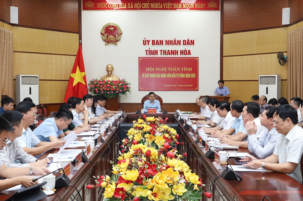 Chiều 17/10/2025, UBND tỉnh tổ chức Hội nghị toàn tỉnh về đẩy mạnh giải ngân vốn đầu tư công năm 2025. Đồng chí Nguyễn Hoài Anh, Ủy viên dự khuyết Trung ương Đảng, Phó Bí thư Tỉnh ủy, Chủ tịch UBND tỉnh chủ trì hội nghị. Dự hội nghị có lãnh đạo các sở, ban, ngành, đơn vị liên quan. Hội nghị được kết nối trực tuyến đến 166 điểm cầu xã, phường trên toàn tỉnh.