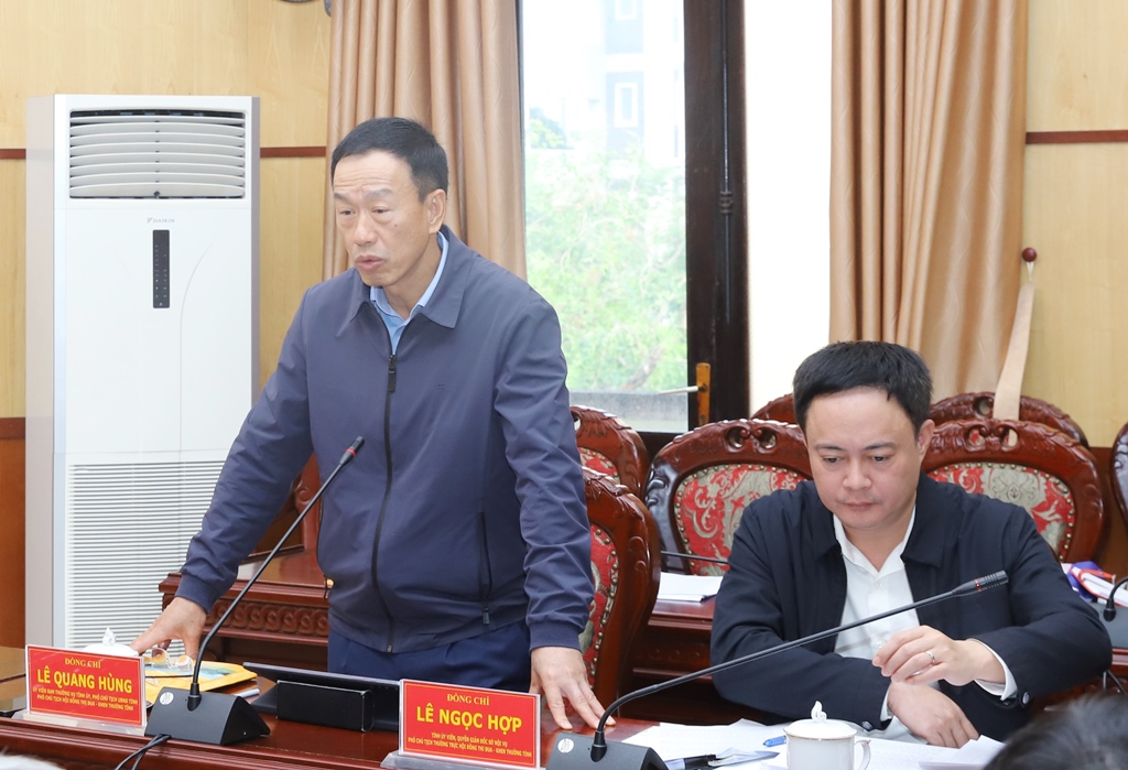 | Phó Chủ tịch UBND tỉnh Lê Quang Hùng phát biểu ý kiến tại hội nghị. |