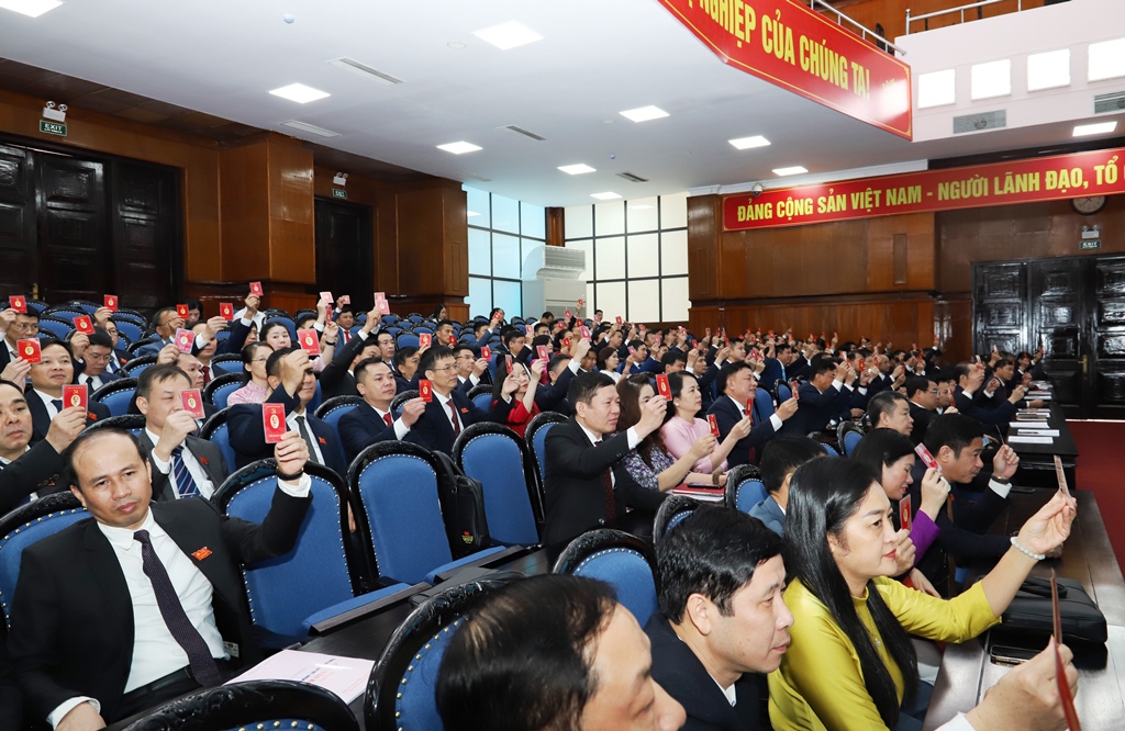 Các đại biểu biểu quyết thông qua cấ Quyết nghị tại Đại hội.
