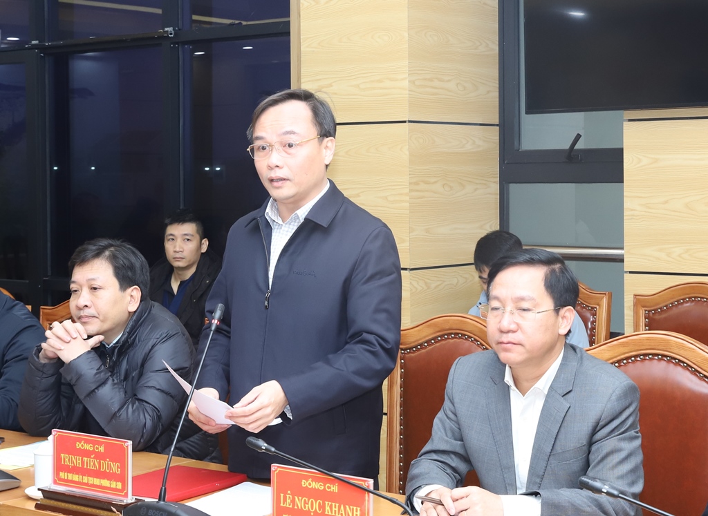 | Đại diện lãnh đạo các ngành phát biểu tại buổi làm việc. |