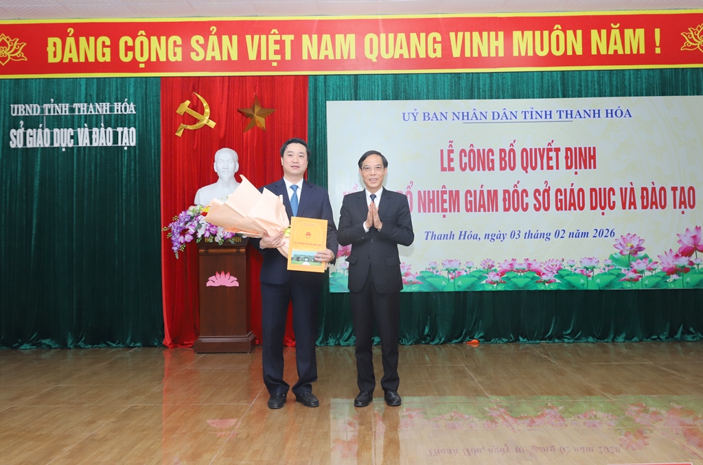 Sáng ngày 3/2/2026, Sở Giáo dục và Đào tạo tổ chức lễ Công bố Quyết định bổ nhiệm Giám đốc Sở Giáo dục và Đào tạo. Đồng chí Đầu Thanh Tùng, Tỉnh ủy viên, Phó Chủ tịch UBND tỉnh trao Quyết định và phát biểu giao nhiệm vụ.