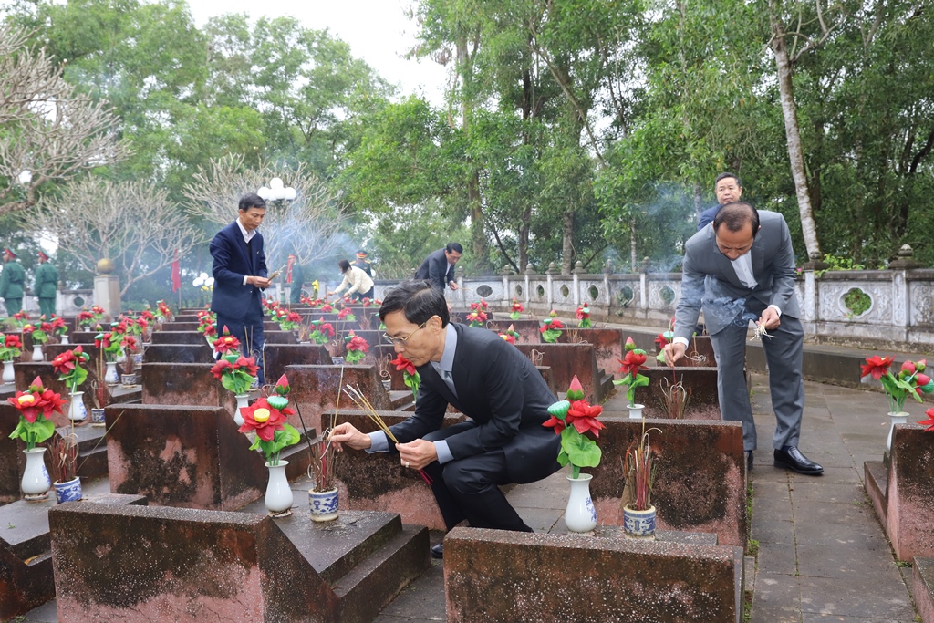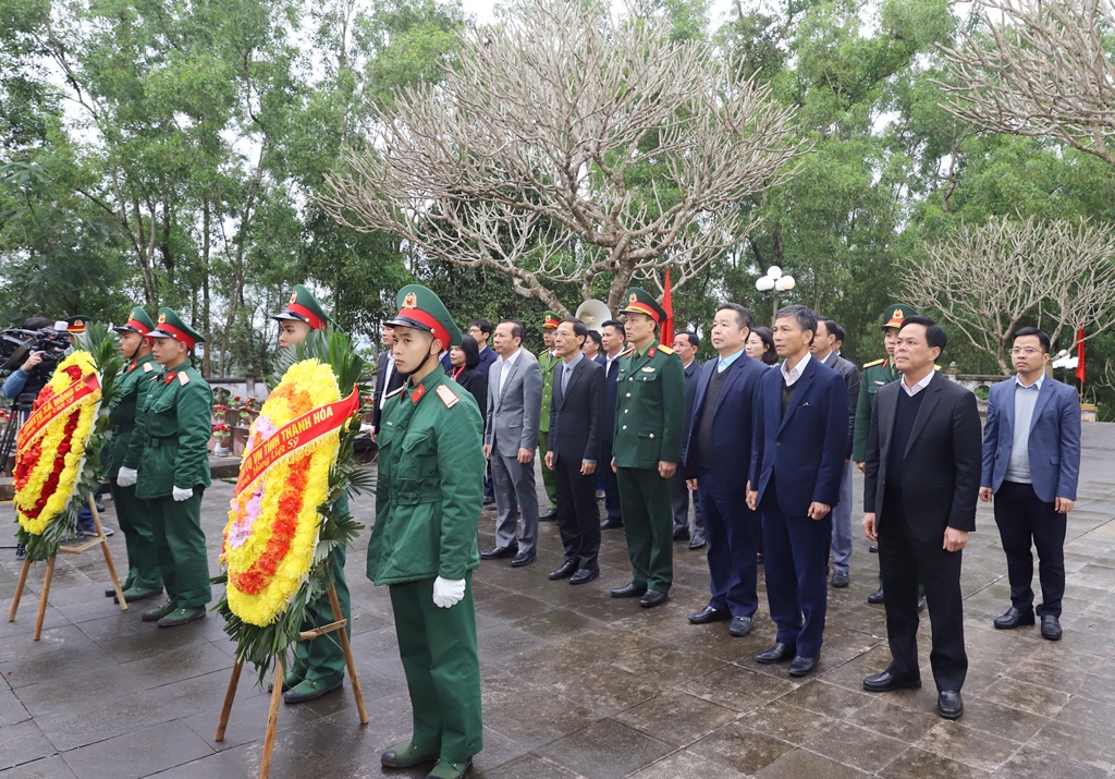 Đến dâng hoa, dâng hương tại Nghĩa trang liệt sĩ Nông Cống, Phó Chủ tịch UBND tỉnh Đầu Thanh Tùng cùng các thành viên trong đoàn đã dành phút tưởng niệm bày tỏ lòng biết ơn sâu sắc đối với sự hy sinh cao cả của các Anh hùng liệt sĩ vì nền độc lập, tự do của Tổ quốc và hạnh phúc của Nhân dân.