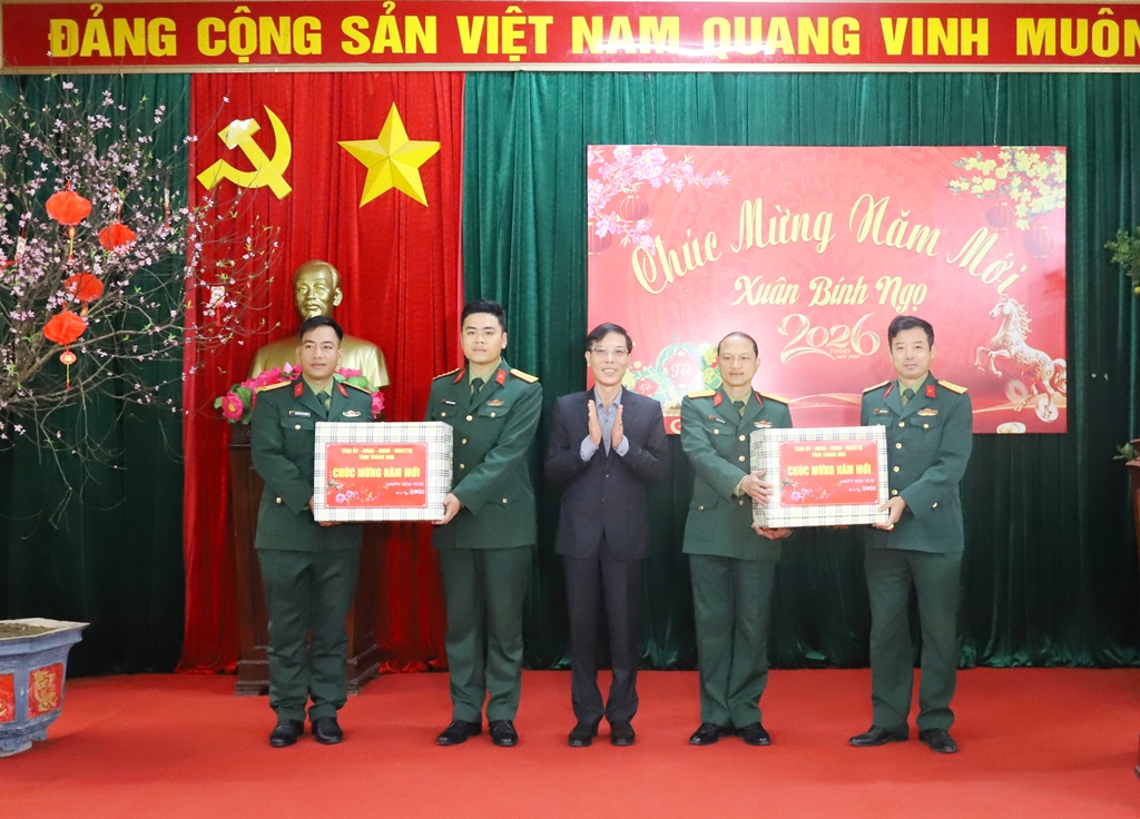 Nhân dịp chuẩn bị đón Tết Nguyên đán Bính Ngọ 2026; đoàn cũng đã đến thăm, chúc Tết, tặng quà cán bộ, chiến sĩ Tiểu đoàn 40, Trung đoàn 762, Bộ CHQS tỉnh Thanh Hóa. Qua nghe báo cáo của Trung đoàn về kết quả thực hiện nhiệm vụ năm 2025 và công tác sẵn sàng chiến đấu, chuẩn bị đón Tết Nguyên đán. Phó Chủ tịch UBND tỉnh Đầu Thanh Tùng chúc mừng và đánh giá cao những kết quả đơn vị đã đạt được. Đồng chí cũng thông tin đến cán bộ, chiến sĩ Tiểu đoàn 40, Trung đoàn 762 những kết quả nổi bật trong phát triển kinh tế - xã hội, đảm bảo quốc phòng - an ninh của tỉnh năm 2025.