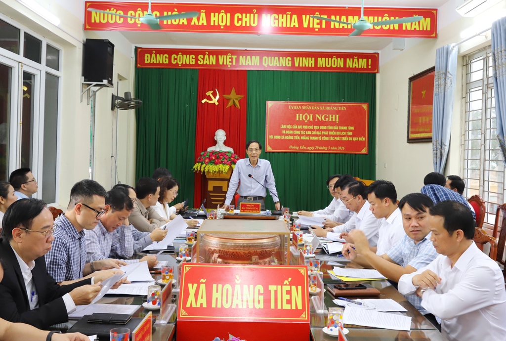 Chiều ngày 20/3/2026, đồng chí Đầu Thanh Tùng, Tỉnh ủy viên, Phó Chủ tịch UBND tỉnh, Trưởng BCĐ Phát triển du lịch tỉnh cùng đoàn công tác đã đi kiểm tra và có buổi làm việc với UBND xã Hoằng Thanh và UBND xã Hoằng Tiến về công tác phát triển du lịch.