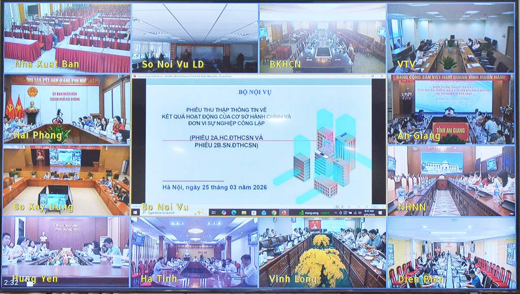 Sáng ngày 25/3/2026, Bộ Nội vụ tổ chức hội nghị trực tuyến toàn quốc tập huấn điều tra cơ sở hành chính, sự nghiệp (CSHCSN) năm 2026. Đồng chí Nguyễn Mạnh Khương, Phó Trưởng Ban Thường trực Ban Chỉ đạo điều tra CSHCSN Trung ương, Thứ trưởng Bộ Nội vụ dự hội nghị.